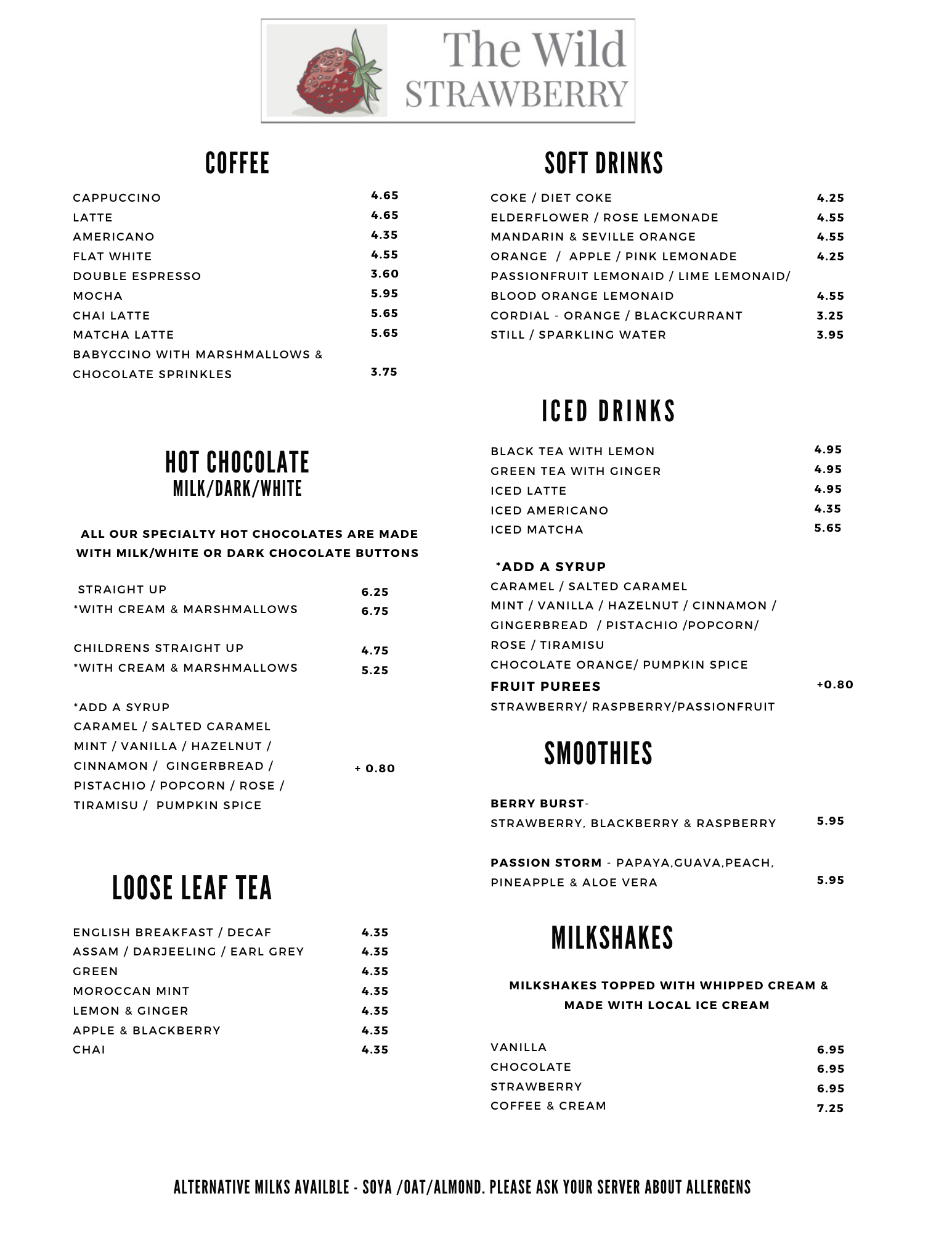 The English Breakfast is a perfect blend of Indian Assam and Sri Lankan Ceylon. We also serve CO2 decaffeinated, and a selection of other black, green and herbal teas. Why not enjoy with a homemade scone with jam and cream for the perfect English cream tea?
